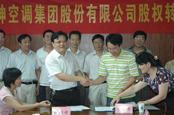 7月9日,列入集团今年资源整合计划的江苏风神空调股份有限公司国有股权流转项目在众和产权交易所正式签约。 风神空调地处启东市,产控集团经国资委授权持有21.07%的国有股份,企业近三年来没有投资收益,列入集团低效股权流转计划。按照审计评估结果和规定程序,经第三轮公开挂牌,风神空调经营层报名并成功收购该股权,成交价441万元。 国资委副主任曹康出席签约仪式。他肯定了各方面对股权流转项目达成一致所付出的努力,认为此次股权流转符合国有监管关于加强对“非本地、非主业、非控股”类股权清理的要求,对于受让方风神空调经营层也有利于加强控制、调动积极性,转股是“多赢”的结果。他要求签约双方严格按照协议做好股权交割及后续工作,确保流转顺利完成。 集团副总经理陆强新、沈百安出席签约仪式。