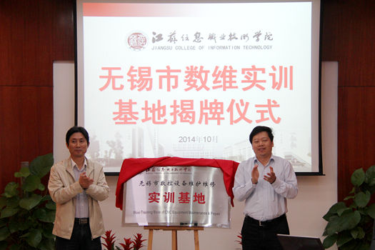 1022日,无锡市数控设备维护维修实训基地揭牌仪式在江苏信息职业技术学院举行,南通科技相关领导受邀参加。仪式上,学院党委书记陆国平和我公司总经理沈春华共同为实训基地揭牌。