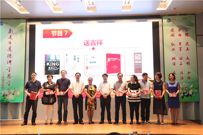 本次活动围绕“诵经典”“学模范”“展风采”“话廉洁”“观情景剧”“谈感悟”“送吉祥”“唱歌曲”八个环节开展。诗朗诵《实干才能梦想成真》重温了习总书记提出的“中国梦”,坚定了大家在平凡岗位上创造不平凡的信心;江天化学吴松华、精华集团朱玉娟两位同志的先进事迹让大家在身边人、身边事中找到感动;情景剧《春风里的故事》让大家在忍俊不禁中体味到资产管理一线员工的不易和他们迎难而上的信心;一曲《真心英雄》展现出了集团职工团结向上的蓬勃朝气,也将活动推向高潮。在“送吉祥”环节,集团领导将精心挑选的《投资最重要的事》等金融书籍赠予各投资企业代表,勉励他们加强学习,不断创新,用拼搏和奉献实现集团的跨越发展。