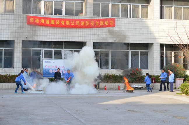 12月6日下午 ,随着毛明辉副总经理的一声哨响,一场别开生面的消防运动会在南通海盟服装有限公司火热开赛。该运动会是南通海盟服装有限公司组织的第五届消防运动会,来自公司的9支代表队在提水桶、搬运塑料篓及衣架、搬运灭火器、迅速火盆灭火联手接力赛项目上展开比拼。