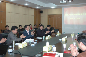 二月十三日下午,产控集团本部召开员工大会,对上年度先进工作者以及被上级机关表扬、表彰的部门和个人进行表彰。陈照东董事长给受表彰的部门和个人一一颁奖。 陈董事长指出,产控集团在过去一年取得了很好的成绩,是所有部门和全体员工共同努力的结果。2009年宏观经济环境复杂多变,困难大,任务重,董事长要求全体员工做到“三讲、三抓”: “讲学习”——认真学习掌握国家有关宏观调控的方针政策、法律法规和经营管理知识,提高抗风险能力;“讲团结”——顾全大局,摆正位置,加强班子团结,加强员工团结,把发展事业推上新的台阶;“讲效率”——在科学决策基础上,通过良好的工作方法,把事办好、办圆满,达到预期效果。 “抓发展”——追求效益最大化,进一步做好服务、协调、监管工作,帮助骨干企业做优做大做强,搞好分工协作,盘活闲置资产;“抓重点”——着重做好防下滑、保增长,抓转机、促发展,拓领域、调结构,强基础、添后劲,提速度、增效益方面的工作;“抓落实”——各项年度工作目标要分解落实到责任部门、责任人,特别是项目发展工作,要通过“项目推进年”活动,有效组织起来,取得事半功倍的效果。 陈金明总经理主持会议。