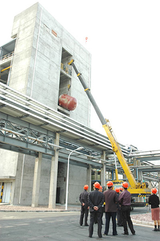 江山股份草甘膦工地正在吊装反应釜