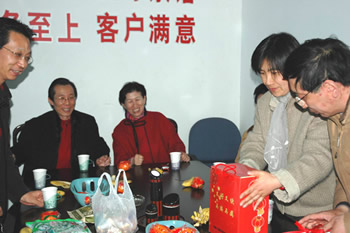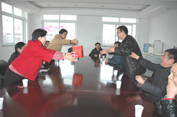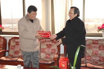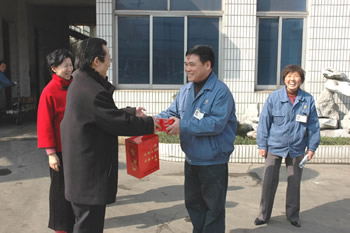 2007年春节刚过,公司领导班子深入各投资企业开展慰问活动。正要出发,市经贸委主任蔡惠中一行上门慰问
