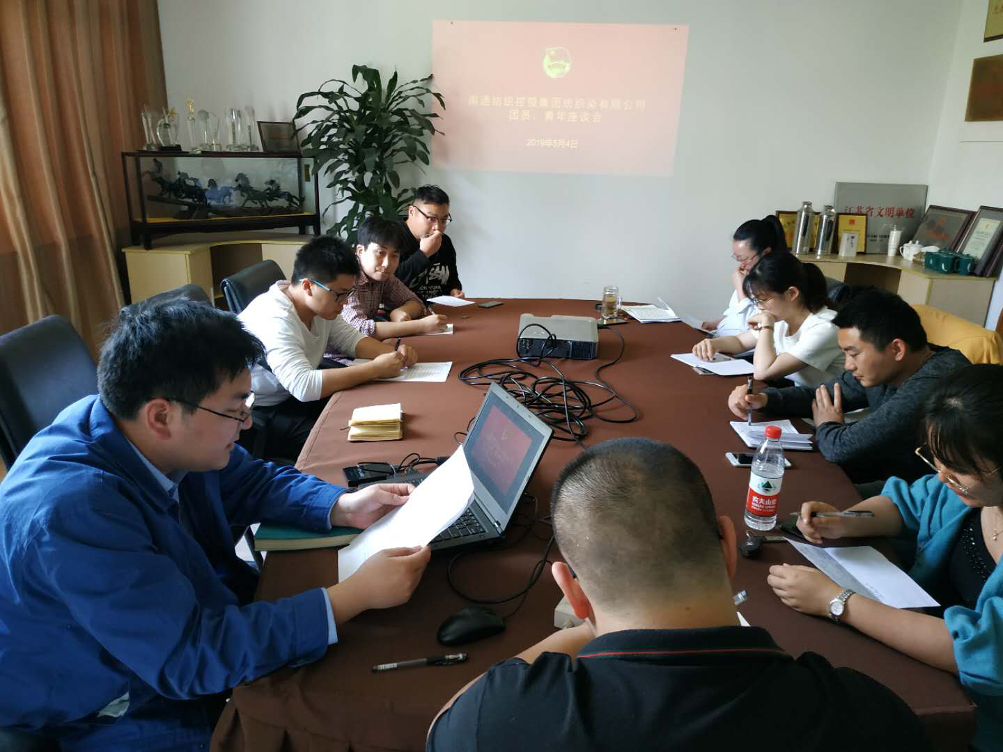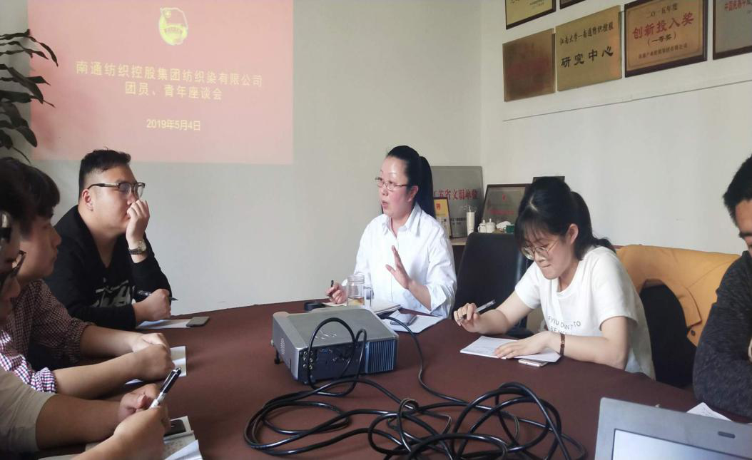 今年是共青团建团97周年,五四运动100周年,为进一步弘扬五四精神,激发新时代公司团员、青年以饱满的热情积极投身本职工作当中,2019年5月4日,南通纺织控股集团纺织染有限公司团总支召开了以“争做优秀青年,助力企业发展”为主题的团员青年代表座谈会。纺织染党委副书记卢李星及各团支部团员青年代表共计10人参加了座谈会,会议由团总支书记王建兴主持。座谈会共分为三项议程。首先由王建兴代表公司团总支作了《2018年团总支工作总结及2019年工作计划》。