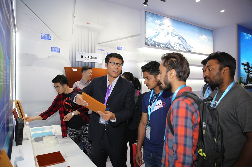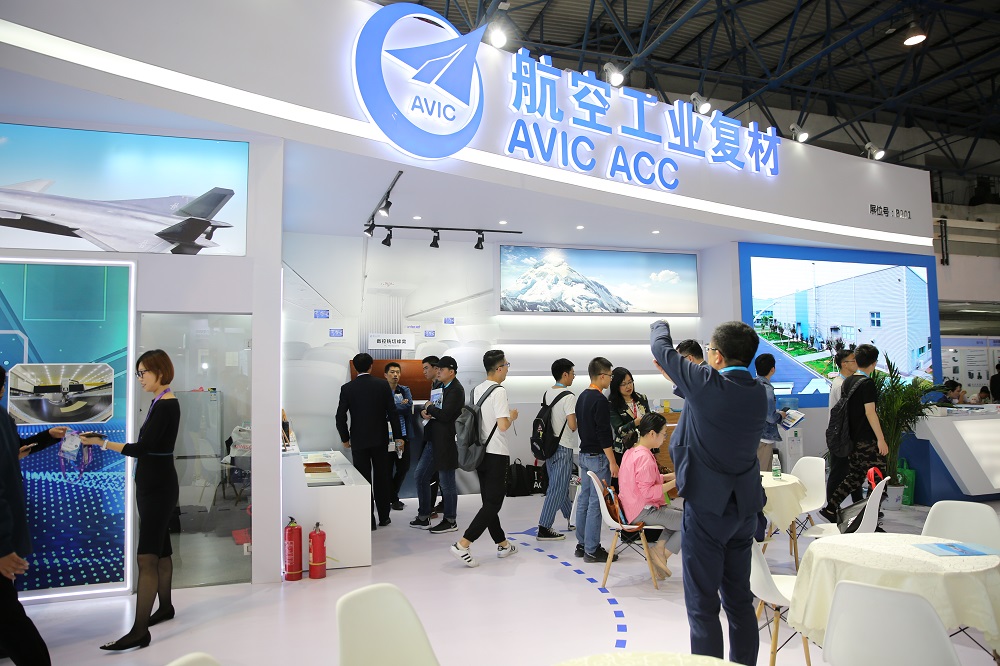 今年的展会吸引了航空工业、中国商飞、杜邦公司、光威复材、赫氏复材等行业知名企业和科研机构参加,吸引了200余家国内外企业前来参展。航空工业复材以白色和航空蓝为主色调,以公司logo与“成为世界级先进复合材料技术和产业先锋”的愿景高调亮相本次展会。展台分为“先进材料”、“先进材料驱动先进制造”和“复材无边界”三个部分,展示了预浸料、蜂窝芯材等中间材料,航空零部件、汽车、轨道交通等轻量化应用以及绿色复合材料的技术及产品,全方位介绍公司在材料、设计、工艺、制造和服务等先进复合材料领域的创新能力,吸引了国内外众多业内人士前来观摩、交流与合作。