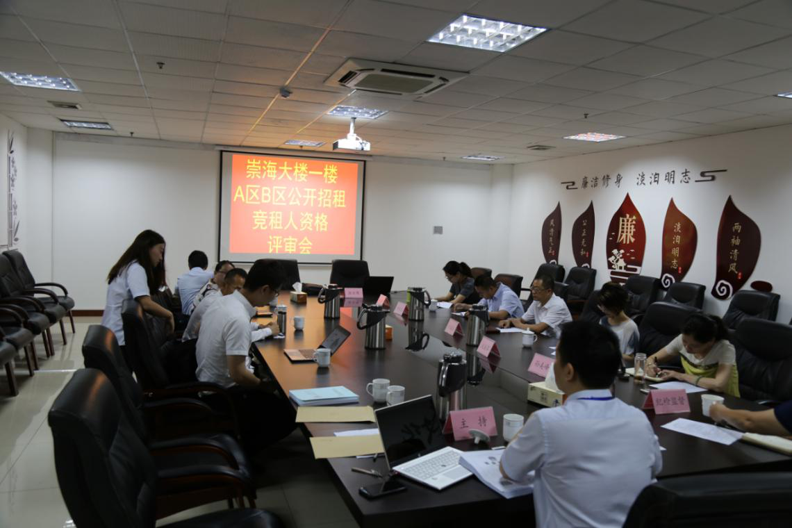 7月8日上午,南通国融资产运营有限公司委托江苏天勤拍卖有限公司主持的崇海大楼A区、B区房屋公开招租竞租人资格评审会在公司隆重举行。市国资委产权处、公共资源交易中心产权交易科及公司相关负责人组成的五人评标委员会对意向竞租人进行综合评审,公司纪检部门对评审过程进行了全程监督。会议就相关竞租人的项目前期调研结果、运营方案、诚信度、相关资信等角度综合审查,并进行了综合打分。经评标委员会评审、纪委监督人员认可,本次竞租人资格评审会的竞租方中国移动通信集团江苏有限公司南通分公司、张家港保税区佑福珠宝贸易有限公司报送的运营方案通过审查,并获得崇海大楼A区、B区房屋招租项目的报名竞租资格。