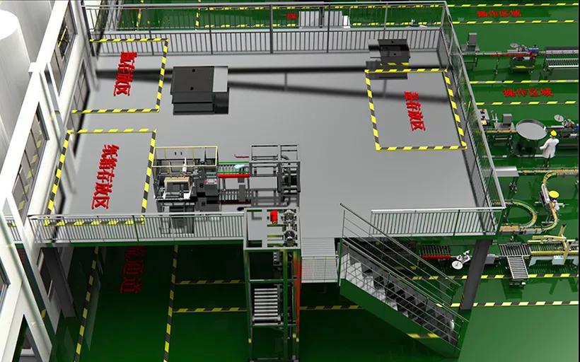 江山股份新建的自动包装线布局上结合现场的管理定置要求,从包材、生产线布置、物流通道、人员进出通道等统筹考虑,在原车间局部搭建了二层操作平台;解决一层包装现场包材堆放所占空间,生产现场更整洁有序。整套生产线最大限度地节省空间、精简人员,便于维护和操作,提高了工作效率和包装品质。