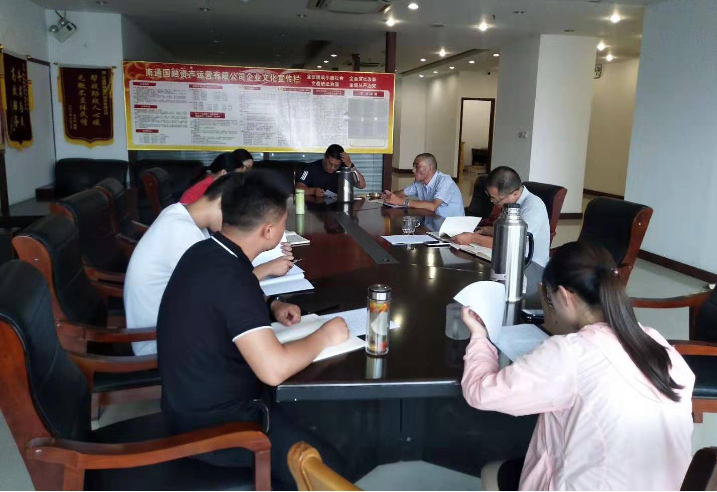 为了更好的落实公司党委要求,进一步加强党员干部的先锋模范作用,近日,南通国融资产运营有限公司第一党支部以“学习党章党规心得体会交流”为主题,在公司党员活动室召开了主题党课学习活动。活动由国融资产支部书记瞿伟主持,党委书记刘海兵、第一支部相关党员及积极分子共8人参加此次活动。