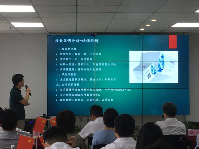 活动上,天演资本投资总监张建介绍了投资基本知识及典型投资案例,南通牛触信息科技有限公司、南通林格自动化系统工程有限公司负责人分别作了“数字化工厂”以及“激光触控技术的衍生设备研发”项目推介。在座员工活学活用,充分发表意见,与企业做了深入沟通与交流,投资专家也对项目作出点评,给予了指导和建议。最后,产研院总经理范昹对本次活动给予总结,并对所有员工提出了殷切希望,要求产研院全体员工以“不忘初心、牢记使命”主题教育活动为契机,牢牢把握此次学习机会,充分利用投资沙龙活动提高自身的业务水平,以项目经理人为目标,切实增强会看项目、懂项目、分析项目的能力,不断拓展产研院投资渠道,推动产研院实现更高质量发展。