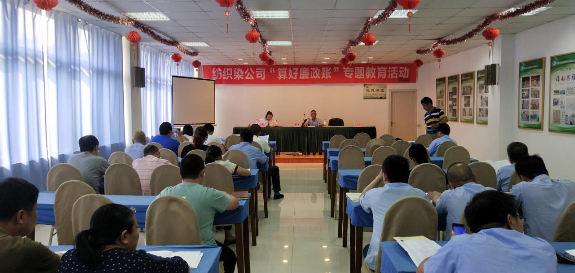 为认真贯彻落实中央纪委二次、三次全会精神,以各级领导干部为重点加强党纪教育,提高思想觉悟,增强抵腐定力,涵养干部队伍清风正气。根据市纪委、产控集团纪委要求,9月28日,南通纺织控股集团纺织染有限公司纪委在本部二楼多功能厅召开了2019年“算好廉政账”专题教育大会,纺织染党委书记、董事长李志宏、党委副书记、纪委书记卢李星、财务副总张乃丽、全体党员、中层助理及以上管理人员、部分关键岗位人员出席参加会议。