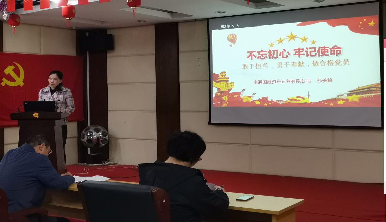 10月24日,南通国融资产运营有限公司党委委员、工会主席孙美峰结合“不忘初心、牢记使命”主题教育给公司全体员工上了一堂题为“敢于担当,勇于奉献,做合格党员”的专题党课。