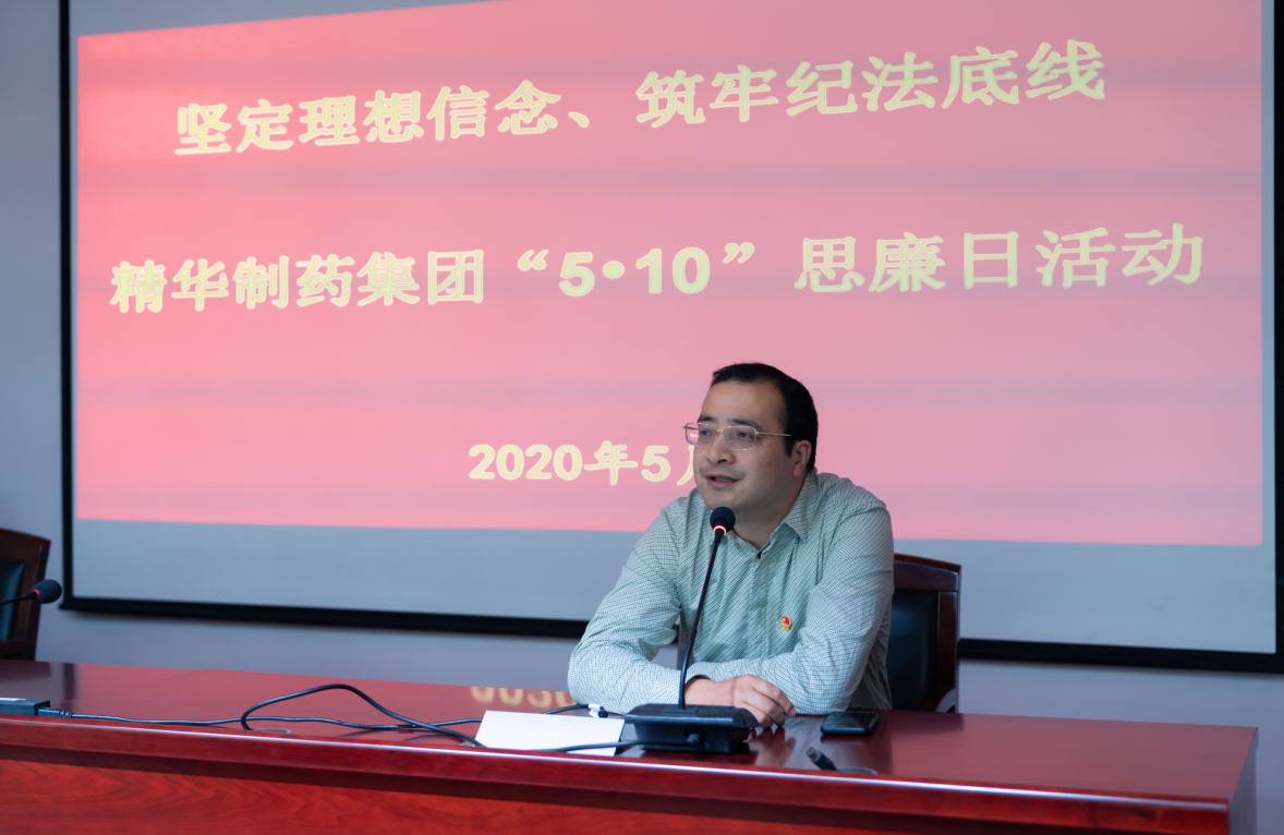 5月11日下午,日本av在线 党委在三楼会议室组织开展“精华制药‘5•10’思廉日”警示教育和党委书记上廉政党课活动。参加本次活动的有集团直属支部、制剂生产支部、制剂销售支部和原料药第一党支部的党员干部职工。党委副书记钱卫峰主持了本次活动。