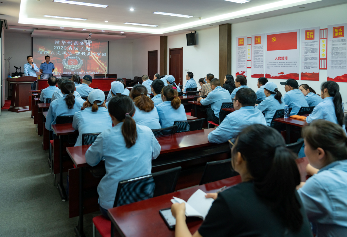 为预热“安全生产月”活动,提高公司安全生产工作氛围,5月27日下午,精华制药制剂生产公司组织开展了消防安全和交通安全培训两场专题安全培训,培训教室座无虚席。