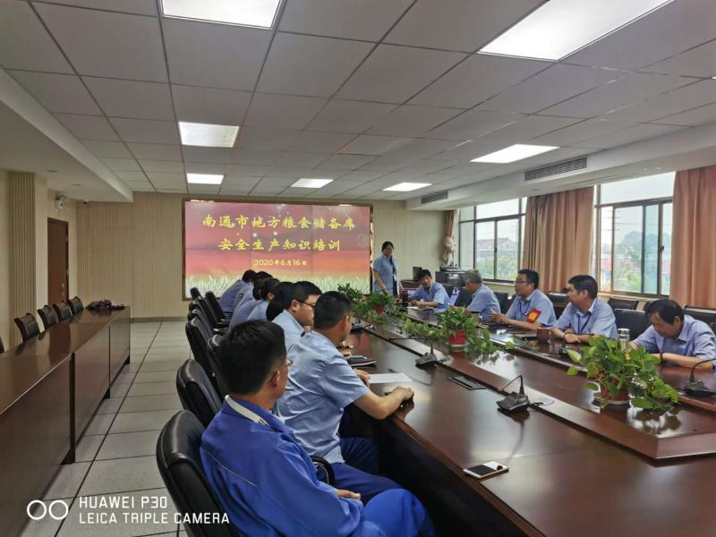 按照2020年“安全月活动”计划安排,结合夏粮收购期间做好安全生产工作的要求,近日,南通市地方粮食储备库组织全体员工进行了安全生产知识培训。培训活动由库主任陈晓东主持。培训内容包括观看《规矩-生命的底线》、《当生产安全事故之后的深思》和《有限空间作业事故案例及分析》等安全教育片,以及组织大家重温学习《粮食出入库作业流程及安全要点》。通过培训,不断唤起全员的强烈安全责任感,有效提高安全生产技能,使全员牢固树立“安全第一”思想观念,做到人人关心安全,时时注意安全,事事想到安全。培训结算后,全体员工在“我是安全生产第一责任人”题板上签名承诺。
