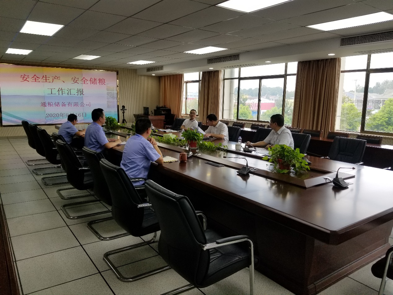9月16日上午,产控集团党委书记、董事长张剑桥,党委副书记黄培丰一行对南通通粮粮食储备有限公司进行安全储粮、安全生产检查并调研指导工作。通粮储备公司领导班子成员参加调研。