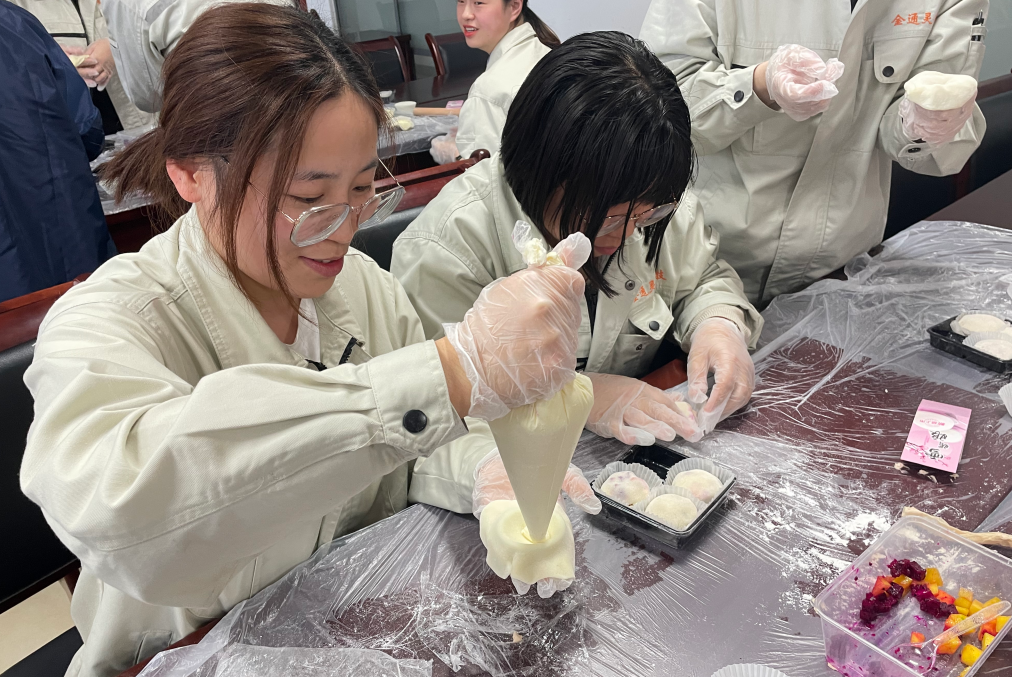 当天下午,金通灵近100名女职工欢聚813活动室,在张老师的现场制作教导下,分别制作了雪媚娘和便当蛋糕。活动现场,张老师讲解了烘焙知识和制作流程,职工们在认真聆听后,体验着自己动手制作甜品的乐趣,享受着快乐的烘焙时光。随着时间的推移,一个又一个饱满、垂涎欲滴的雪媚娘、一个个精致的便当蛋糕制作完成。