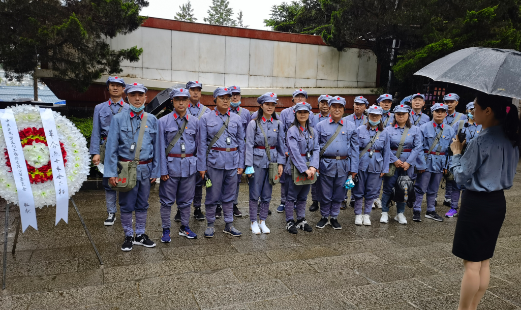 初夏的井冈山,雨水连绵,万木苍翠,沿着革命先辈的足迹,我们参观了井冈山革命博物馆、茨坪旧居、黄洋界、小井红军医院、大井伟人旧居等地,井冈山的光辉历程,皆承载着中国共产党人的初心和使命。当我们来到井冈山革命烈士陵园,穿着红军服,站在滂沱大雨中,聆听专业讲解员声情并茂、情感真挚的现场教学并向无数抛头颅、洒热血、视死如归的革命烈士们敬献花圈时,雨水混着泪水,胸中追寻红色记忆的波澜瞬间达到了顶峰,井冈山精神的灵魂,真真切切穿击每个人的心底!