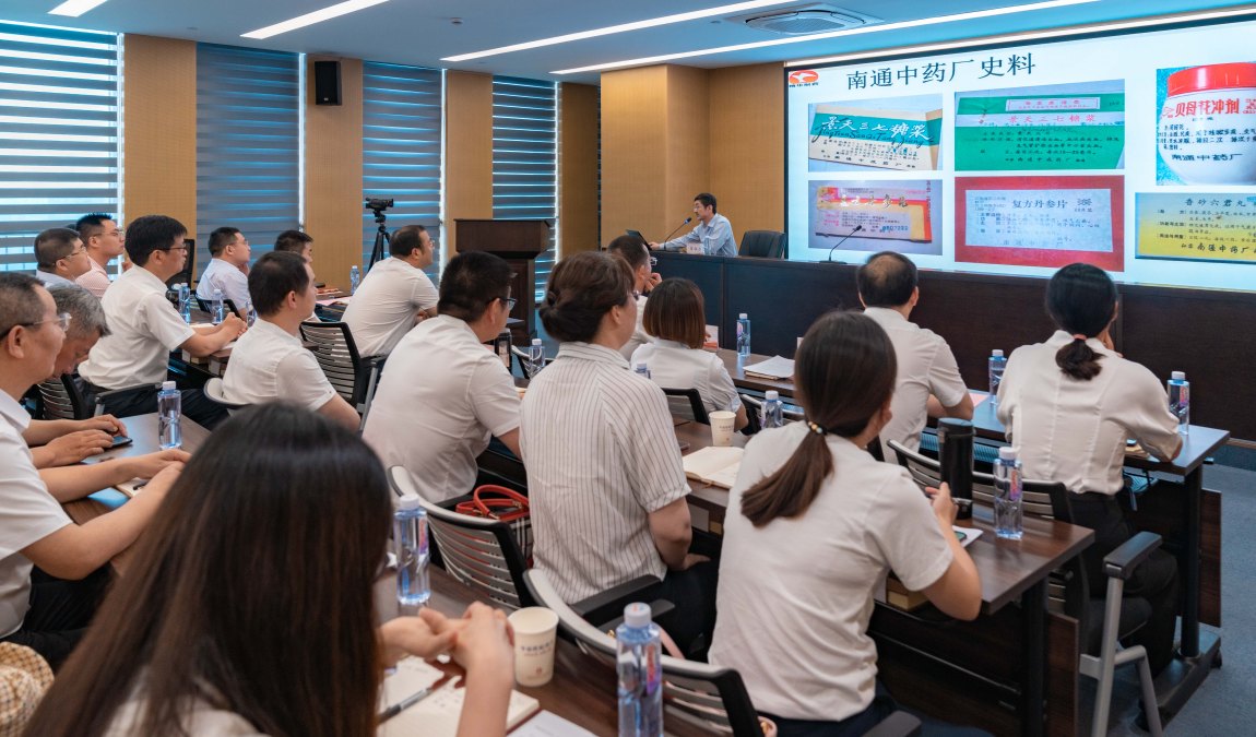 会议在雄壮的《中华人民共和国国歌》声中拉开序幕,集团公司监事会主席、销售党支部书记薛红卫以“精华课堂”为载体,生动地讲述了精华发展简史和核心产品发展史,并用“一二三四五”归纳总结出我们精品药物的特性。 随后,大家观看了老厂长、老党员、老职工讲述的《追忆厂史 传承精华》视频资料。