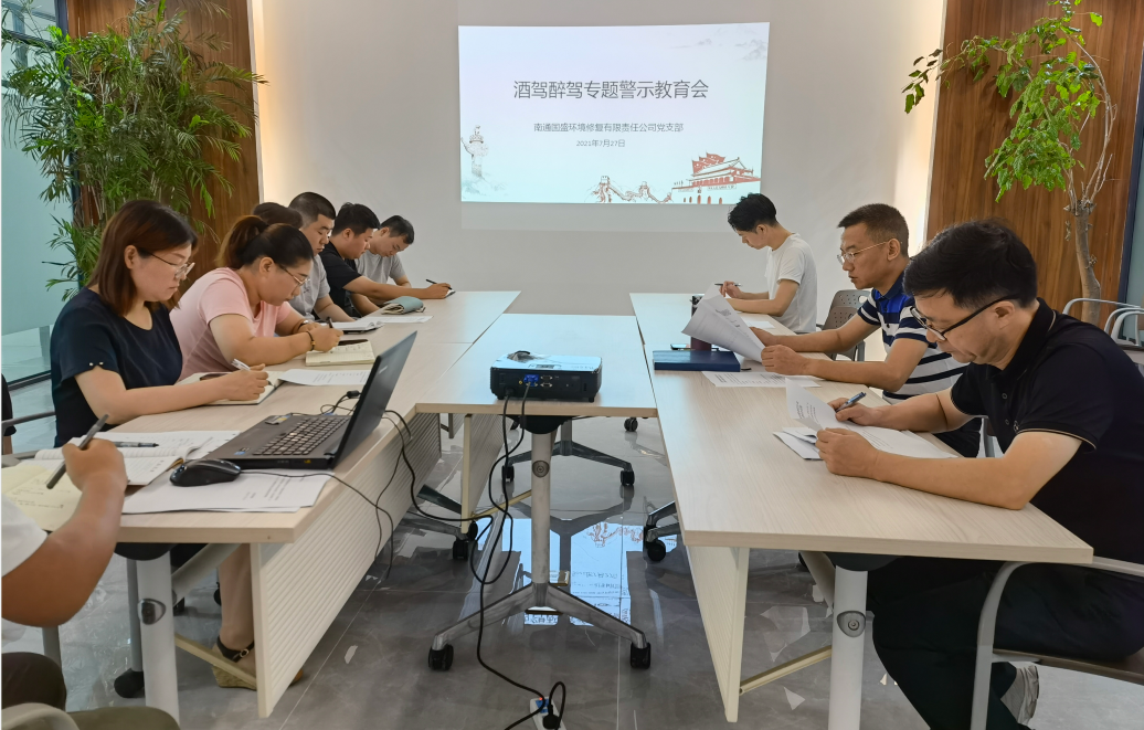 为进一步强化警示教育,严明纪律规矩,督促引导干部职工遵纪守法,防止酒驾醉驾违纪违法行为的发生,根据产控集团纪委部署,国盛党支部于7月27日召开酒驾醉驾专题警示教育会,公司全体员工参加会议。