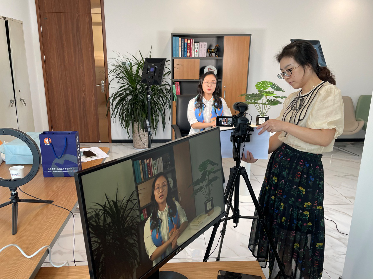 “哈喽大家好,我是金花吴药师!”伴随着极具辨识度的招呼声,放眼望去端坐在镜头前的是日本av在线 制剂生产分公司副总经理吴玉荣。