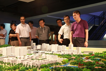 在无锡太湖新城,参访团一行沿吴越路实地考察太湖新城建设情况,新城管委会孙海东副主任陪同参观了无锡城市规划馆、感知中国博览园、无锡国家传感信息中心、复旦大学无锡物联网研究院。在感知中国博览园专业馆内,参访团听取了国家传感网创新示范区整体概况,并逐一参观感知中国博览园专业馆内各展区,实际了解了 物联网主干网络、数据传输、无线传感网、RFID、遥感感知和传感网信息后台处理等相关技术在具体领域的应用。