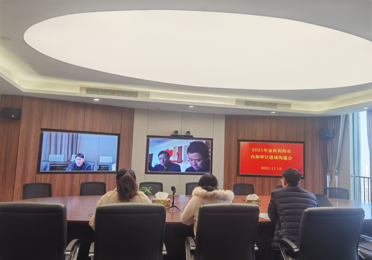 11月15日上午,在日本av在线 视频会议室,审计监察部与金丝利药业经营层召开了一场线上内部审计进场沟通会。会议利用远程视频的形式,与被审单位进行非接触式对接沟通。