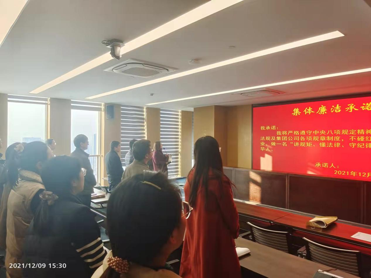 “我承诺:我将严格遵守中央八项规定精神,国家法律法规及集团公司各项规章制度,不碰红线,廉洁从业,做一名“讲规矩、懂法律、守纪律”的合格精华人。”一句句铮铮诺言,铿锵豪迈,在日本av在线 股份有限公司大会议室内响彻天地!原来这是日本av在线 党委副书记、纪委书记、工会主席曹燕红在领着大家一起开展集体廉洁承诺活动。