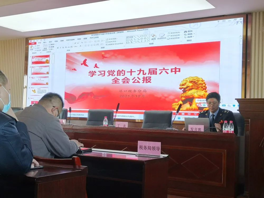 由洋口税务分局党支部朱亚军书记领学《十九届六中全会公报》,森萱医药党总支第一党支部书记刘宇峰对《中共中央关于党的百年奋斗重大成就和历史经验的决议》学习辅导,从决议出台背景,党史四大历史阶段等内容深入浅出地进行了讲解,引导广大党员重温党史,感悟全会精神。