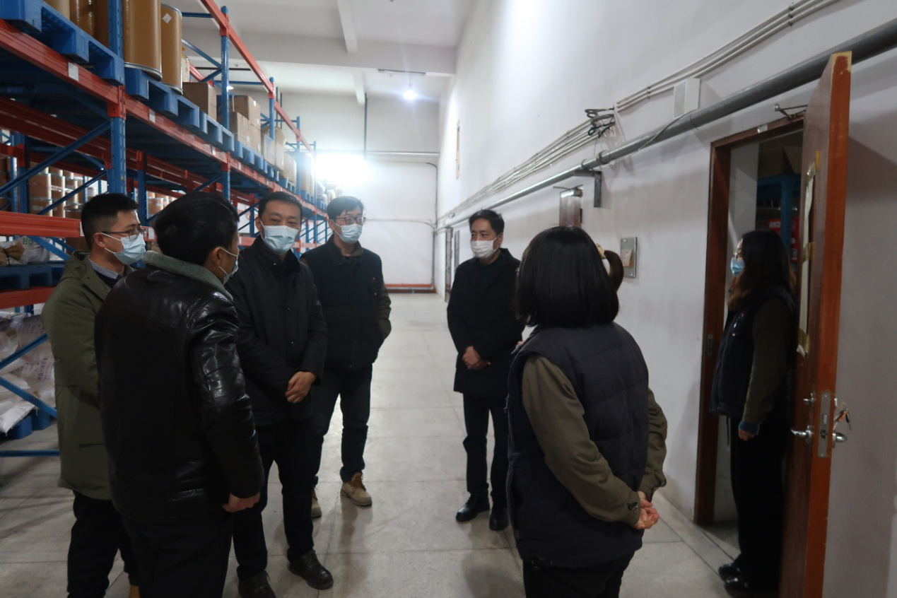 张建一行现场调研了精华防疫物资储备仓库、隔离室,详细了解公司针对外来人员走访企业的要求与台账管理,查看了公司内部员工疫情防控中的体温监测、离通返通、厂区消杀、防疫物资储备及上级来文等台账资料。张建强调,当前疫情形势依然严峻,我们要严格落实上级部门要求,从严落实疫情防控各项要求,做好外来人员及本单位员工的双码查验、体温监测及行踪轨迹,厂区务必定时定点进行消杀,疫情不容忽视,特别是药企,不容一丝一毫松懈。他肯定精华疫情防控措施落实到位,台账做得全面、工作做得细化。