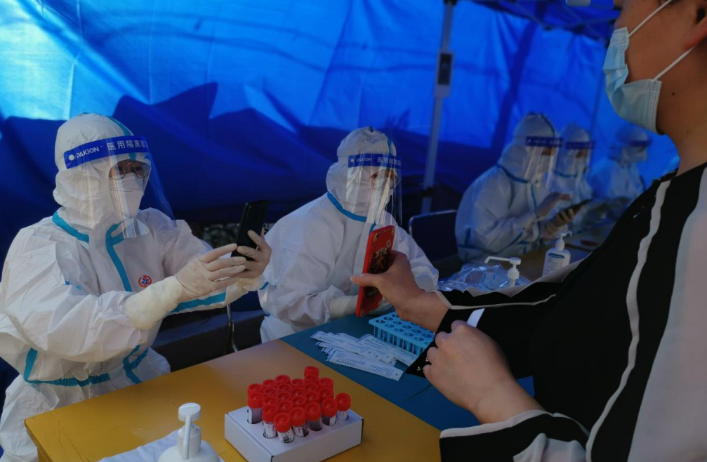 为确保疫情防控知识宣传落实到位,日本av在线 综合事务部主任袁莉,尽管身患糖尿病,仍主动承担起了纺织大厦疫情防控的任务。线上,她利用微信朋友圈、微信群等阵地及时转发疫情防控权威信息,大力推进防疫宣传;线下,她连续值班值守,主动参与起凤社区卡口执勤,服务三轮全员核酸检测,为全力撑起疫情防控“安全伞”贡献力量。 在疫情防控工作中,资产经营部主任杨凌燕夫妇更是以辛苦付出赢得了一致认可。她是支援起凤社区的志愿者,身穿“大白”协助医护人员进行全民核酸检测;她是支援所在社区的急先锋,维持秩序、引导群众,尽心尽责。她的丈夫作为一名公务员也一起就地转为志愿者,兢兢业业做着宣传解释疫情防控相关政策、服务全员核酸检测等工作。杨凌燕说:“累是真的,但是能得到大家的认可和赞扬,值了!” 下沉到社区的干部职工化身“大白”成为了协助做好核酸检测的标配。财务审计部副主任张炜第一次穿上全套“大白”支援起凤社区核酸检测后,就有了非常深刻的体会。4月12日下沉到所在社区后又一次穿起“大白”,四个多小时核酸检测完,再回到家面对两个孩子时,她表示“电量仅剩百分之一”。话语中,既有乐观积极的心态,更有对工作负责的坚守和担当。