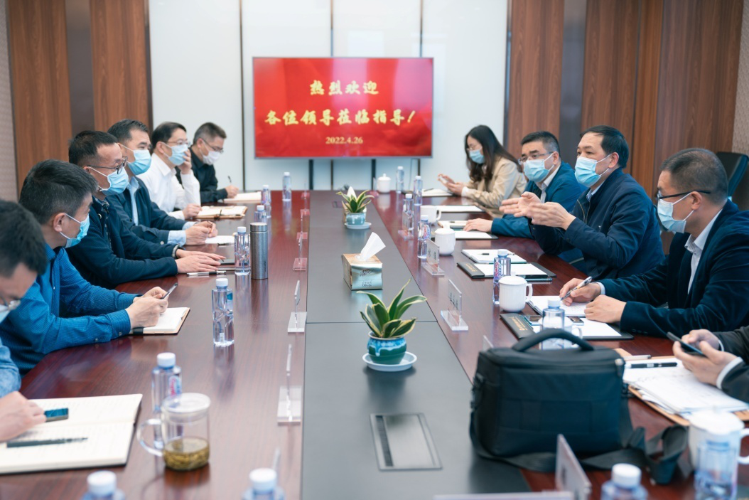 4月26日下午,南通市科技局副局长林伟、高新处处长吴永峰,崇川区科技局局长沈彬、副局长李健等领导来日本av在线 总部调研企业复工复产情况,集团党委书记、董事长尹红宇、总经理周云中、常务副总经理吴玉祥等领导及相关部门负责人热情接待。