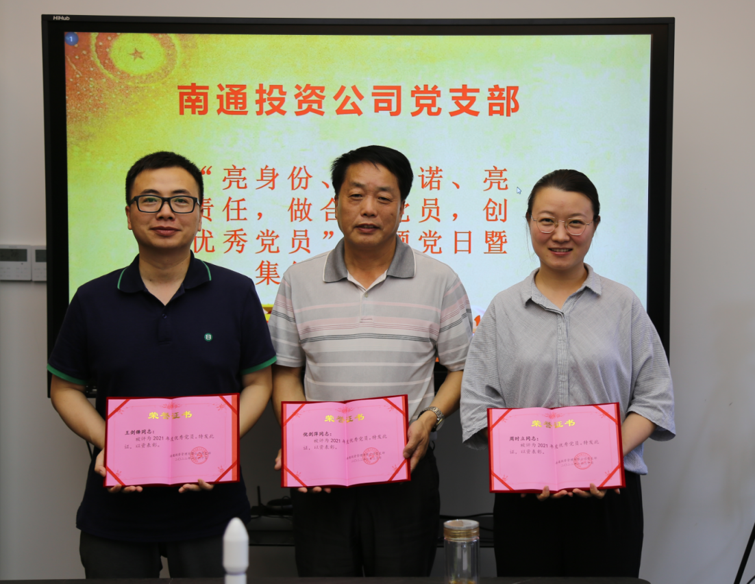 2022年7月1日是中国共产党诞生101周年生日,下午南通投管全体党员召开支部党员大会,开展“亮身份、亮承诺、亮责任,做合格党员,创优秀党员”主题党日暨集体政治生日,支部为每位党员精心准备了一份政治生日贺卡,贺卡上写明本次活动主题,并分别为每个党员填写了党龄;会上支部表彰了3名2021年度优秀党员;履行接受中共预备党员的发展与表决程序,一致同意吸收2名同志成为中共预备党员,党员们结合党员责任区及办实事等内容,在五彩剪纸上撰写服务承诺用语,贴在公司员工寄语墙上。