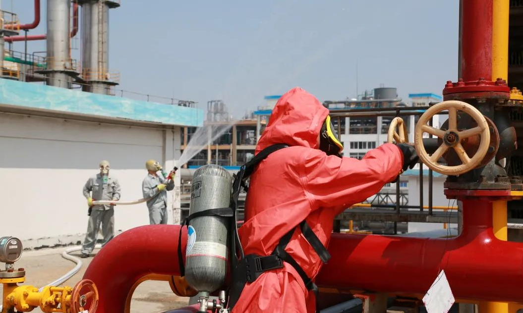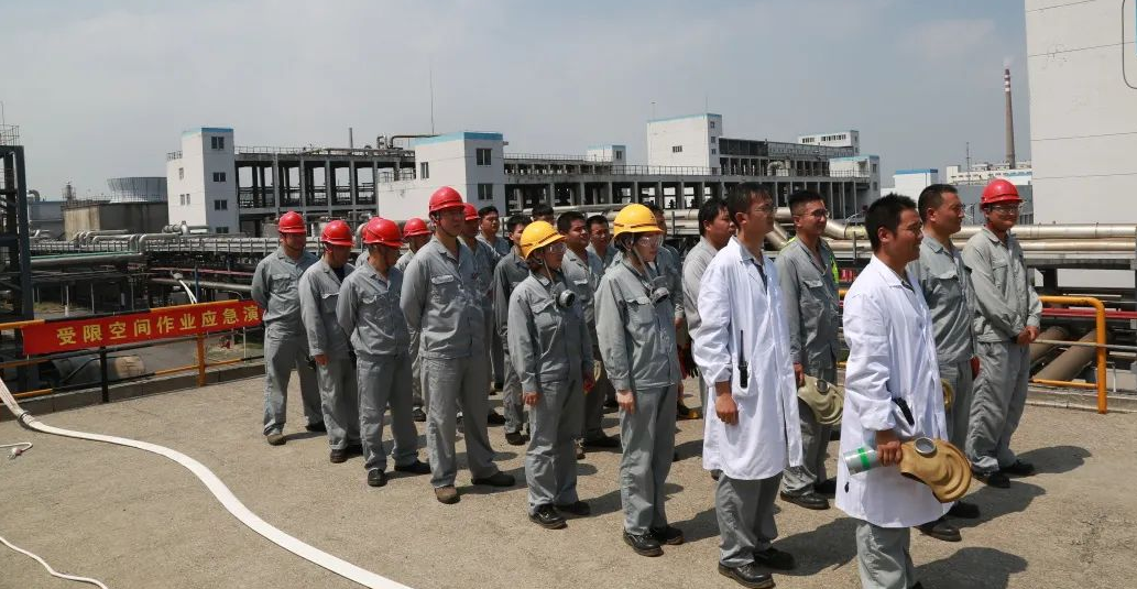 此次专项应急演练现场模拟施工人员在公用工程-10℃冷冻机1#机1号蒸发冷装置内进行检维修作业时,发生人员气体中毒,演练由股份公司总经理助理兼农一事业部总经理吉伟担任应急总指挥。农一事业部义务消防员、医疗救护队、应急处置技术组等参加演练。整个演练是对受限空间作业规程执行情况,受限空间人员救援流程、处置、人员救护技能的一次全面检验。
