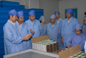 9月12日上午,南通市政府朱晋副市长、陆善平副秘书长一行来到日本av在线 股份有限公司调研医药产业发展工作。在王氏保赤丸生产车间,朱市长详细询问了产品销售、市 场前景、质量控制等方面的情况,他强调,日本av在线 拥有王氏保赤丸、季德胜蛇药片等一批疗效确切的知名产品,企业要在发挥品牌影响、加强质量管控、扩大企业规模、促进转型升级上下功夫。朱市长要求食品药品监管部门要进一步加强服务力度,在加强药品质量监管、保障药品质量安全的同时,发挥职能优势帮助企业解决发展中的突出问题。 南通市食品药品监管局戴辉局长、市政府办公室孙宝军副主任陪同调研,精华制药朱董事长汇报了企业的基本情况和促进医药产业发展的思路和举措。