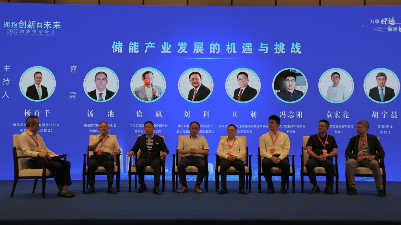 市委常委、常务副市长陆卫东在致辞中提到,希望新能源领域相关企业在产业项目、技术研发应用、数据共建共享等领域与南通开展更加深入广泛的交流合作,将更多先进技术、特色项目和优质资本引入南通、扎根南通,共同打造新能源产业发展的新蓝海,携手共同谱写新能源产业发展的崭新篇章。 活动现场,南方科技大学创新学院院长、澳大利亚国家工程院外籍院士刘科就“能源转型及碳中和的现实与路径”、国家能源集团北京低碳清洁能源研究院国家特聘专家卫昶就“双碳目标下的能源技术创新和产业发展趋势”分别作主旨演讲。如皋市、如东县、南通经济技术开发区、通州湾示范区相关负责人进行了板块推介。圆桌论坛环节,招商局资本副总经理杨百千、沃太能源股份有限公司董事长袁宏亮等八位来自政府、企业、投资机构的嘉宾围绕“储能产业发展的机遇和挑战”相关主题发表意见论述观点,介绍新能源产业的发展现状,并畅想储能行业未来发展的技术路线趋势等,为南通新能源产业发展指点迷津。