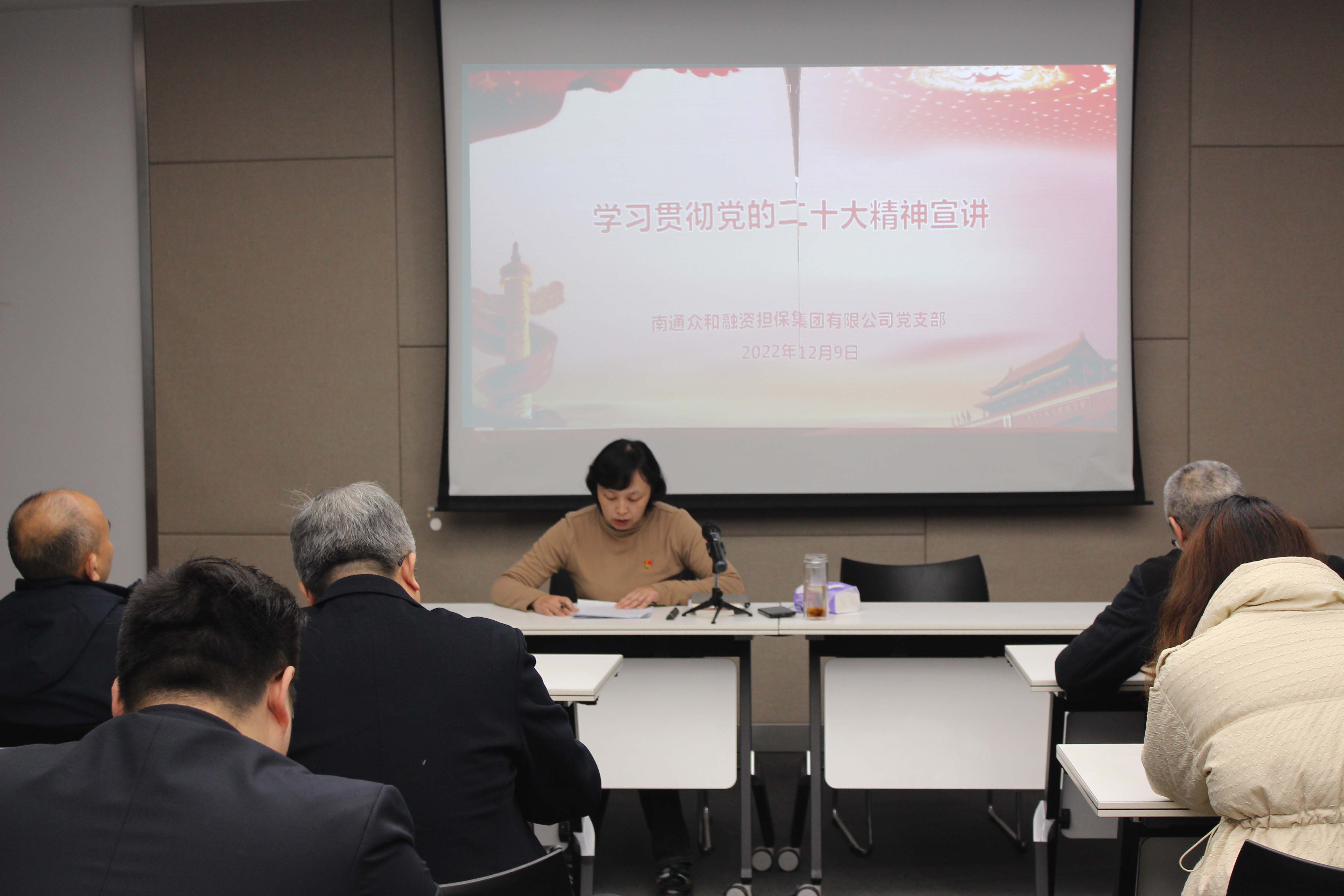 近日,众和担保党支部组织开展学习贯彻党的二十大精神宣讲活动,党支部书记李瑾作宣讲报告,公司中层以上领导及全体党员参加活动。