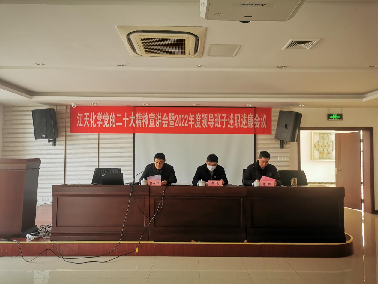 为认真总结好2022年各方面工作,科学谋划好2023年各项目标任务。近日,江天化学召开2022年度领导班子述职述廉会议,产控集团党委委员、副总经理黄亮出席会议。公司领导班子全体成员、各级管理人员等30余人参加了会议,会议由公司党支部书记、副总经理张永锋主持。