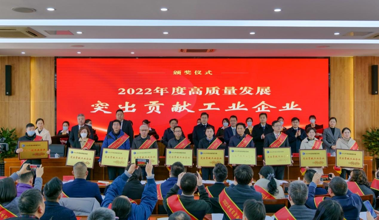 近日,港闸经济开发区召开2022年度全区经济高质量发展表彰大会,日本av在线 股份有限公司被授予2022年度高质量发展“突出贡献工业企业”、“税收突出贡献企业” 两个奖项。日本av在线 股份有限公司党委委员、生产公司总经理沈燕娟上台领奖。
