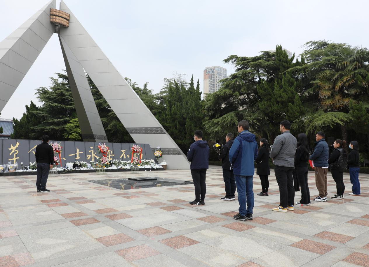 南通市烈士陵园内,松柏苍翠,庄严肃穆。纪念广场中央,革命烈士纪念碑巍峨耸立,“革命烈士永垂不朽”八个金色大字格外醒目。在雄伟的革命烈士纪念碑下,党团员们在默哀中缅怀和追思先烈,悼念为新中国的建立和发展而牺牲的革命英烈。参加祭扫活动的党团员们有序地向先烈们献上鲜花,向革命先烈致以崇高的敬意。