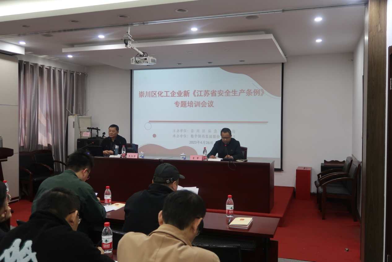 精华制药制剂生产公司于4月26日下午组织开展新《江苏省安全生产条例》专题培训会议,此次培训特邀江苏省安全教育培训专家、高级安全教育培训师朱江涛授课,崇川区应急管理局、崇川区重点企业主要负责人、安全管理人员、精华制药生产公司相关管理人员参加培训。崇川区应急管理局副局长李军主持会议。
