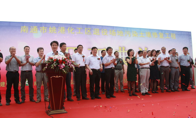 2013年8月30日上午9点18分,政府重视、民众关心的南通市姚港化工区退役场地污染土壤修复工程开工仪式在姚港路35号举行。本次工程修复范围包括原南通农药厂、树脂厂、染化厂生产厂区及姚港河部分河段,修复土地面积约550亩,修复土方量28万立方米。根据前期修复调查评估,修复地块的污染物主要以挥发、半挥发农药、有机污染物为主,修复工作将使用热解析、化学氧化等多种成熟技术。修复工期一年半,修复达标后再进行二次开发。