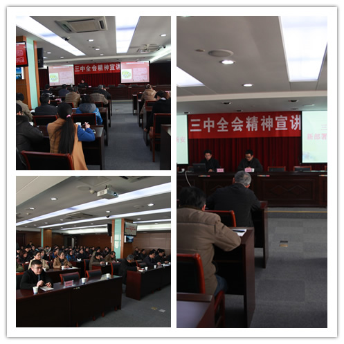 报告会紧紧围绕十八届三中全会《决定》和习近平总书记重要讲话精神,科学严谨的诠释了十八届三中全会的基本情况和重大意义,重点分析了全面深化改革对实现党的十八大总体目标的作用和背景。深刻阐述了全面深化改革的指导思想、总体思路、重点任务和重大举措,围绕《决定》提出的新思想、新观点、新论断,结合实例进行了深入解读。从坚持和完善基本经济制度,全面深化经济体制改革;改革方法的系统性、整体性、协同性;经济、政治、文化、生态文明等领域的战略布局总结了我国深化改革的特性和基本原则,阐述了全会深化改革的总体战略思路和总体目标。宣讲系统脉络清晰、生动形象,理论性、思想性、操作性都很强,对深刻理解和把握十八届三中全会精神、为集团又好又快发展有很强的针对性和指导性。