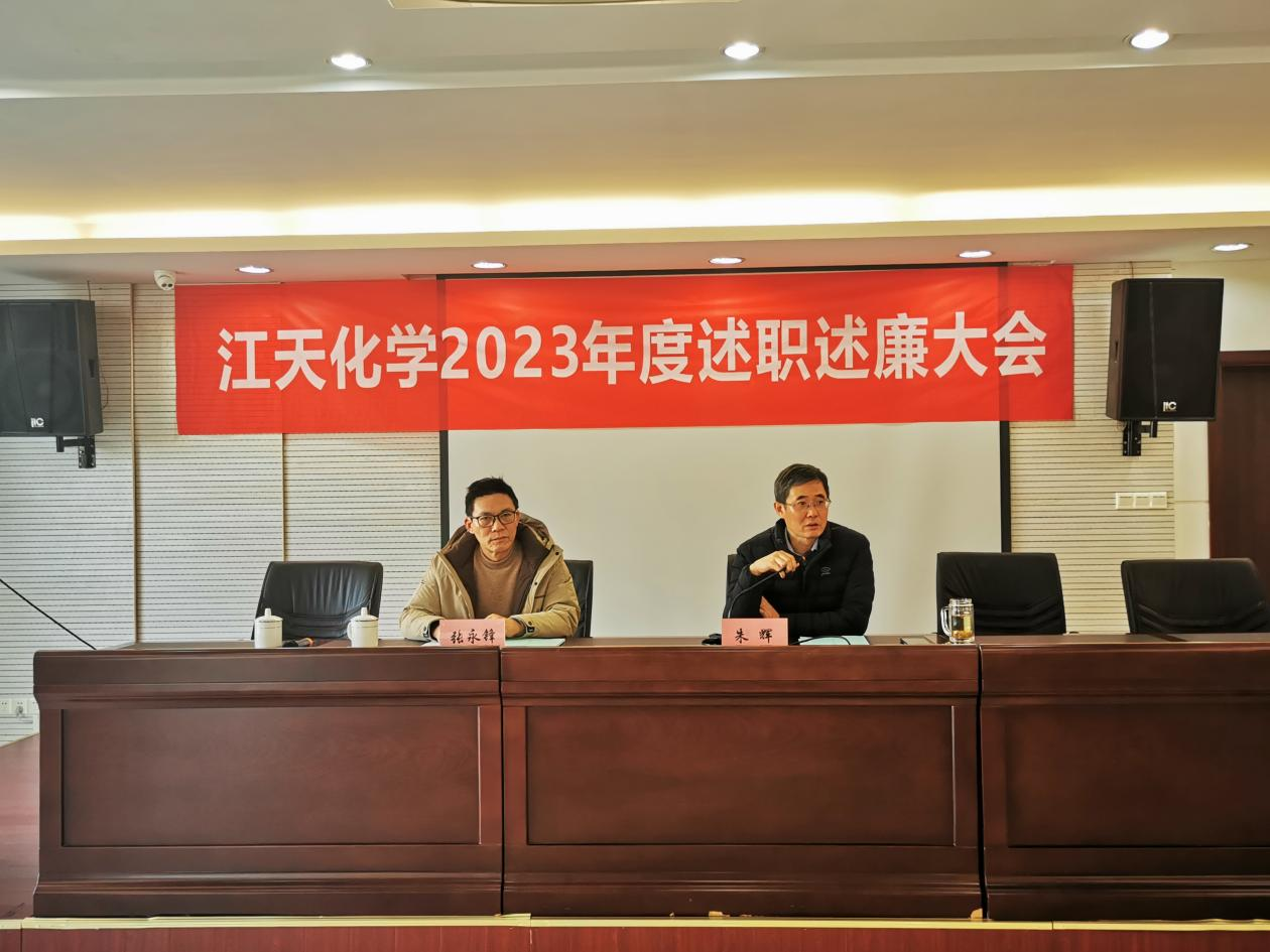 123日,江天化学组织召开中层干部年度述职述廉暨民主评议会议。公司董事长、总经理朱辉出席会议,会议由公司党支部书记、副总经理张永锋主持。