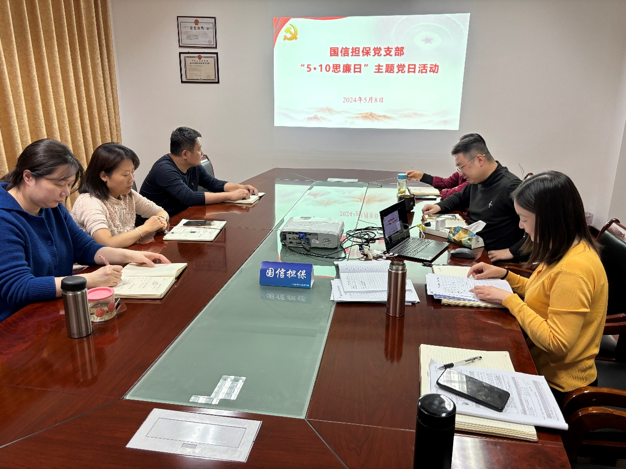 为深入贯彻习近平总书记关于党的自我革命的重要思想,全面落实中央纪委三次全会和省、市纪委四次全会部署,根据产控集团活动部署要求,国信担保公司党支部于5月8日组织开展了“5·10”思廉日活动,公司全体党员参加了会议,群众列席了会议。