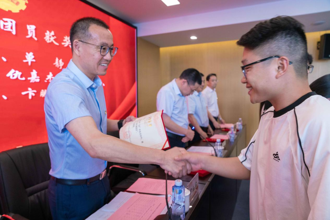在嘹亮的国歌声中庆祝七一表彰大会拉开了帷幕。会上,集团党委副书记、纪委书记、工会主席曹燕红宣读了《关于表彰优秀共产党员、优秀党务工作者的决定》和《关于表彰2023年度优秀共青团员、优秀团干部、五四(流动)红旗团支部的决定》。集团党委班子成员分别向26名优秀党员、7名优秀党务工作者,13名优秀共青团员、6名优秀共青团干部以及五四红旗团组织获得者分别颁发了奖杯、荣誉证书和流动红旗。