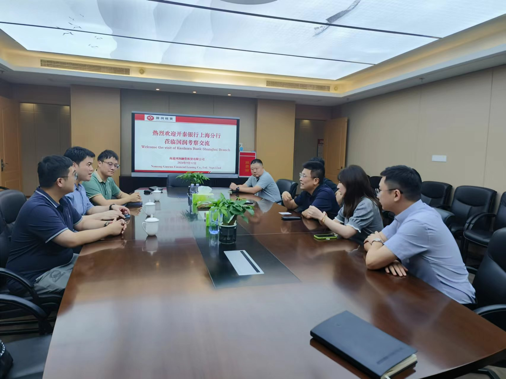 9月12日,开泰银行上海分行行长Ukrit Archapairoj一行人到国润租赁开展业务交流,国润租赁陈大鹏及相关人员参加了交流座谈。