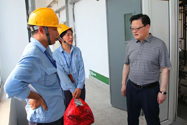 杜永朝一行来到江山股份制剂包装车间,听取了企业负责人关于企业高温期间生产工作安排、防暑降温措施、夏季安全生产工作的汇报。杜永朝详细询问了一线员工工作生活情况,并对大家不畏高温、坚守岗位表示感谢。杜永朝指出,连日来持续高温,生产一线温度更高,员工们在现场坚守奋战相当不容易,希望大家注意身体健康,注意施工安全,注重劳逸结合。他叮嘱企业安全生产负责同志,要根据天气特点以及进度要求,合理安排工作计划,科学实施多工序平行作业,确保高温时段工作人员特别是一线作业人员身体健康。同时要积极落实安全生产预案,认真开展安全事故隐患排查,确保企业平稳健康发展。